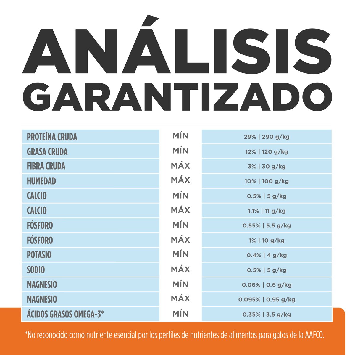 Los nutriólogos y veterinarios de Hill's desarrollaron la nutrición clínica Prescription Diet® c / d® Multicare Feline Stress, especialmente formulada para favorecer la salud urinaria de su gato a la vez que maneja el estrés. De hecho, c / d Multicare es nutrición clínicamente probada para disminuir la recurrencia de la mayoría de los signos urinarios más comunes en un 89%. Cómo funciona: Promueve los niveles deseables de pH urinario Enriquecido con antioxidantes, citrato de potasio y ácidos grasos omega-3 Niveles controlados de magnesio, calcio y fósforo Cómo ayuda: Contiene ingredientes para ayudar a manejar el estrés Disuelve las piedras de estruvita en tan sólo 7 días (promedio 27 días) Reducir el riesgo de piedras de estruvita y oxalato de calcio Recomendado para alimentación de por vida de gatos adultos.