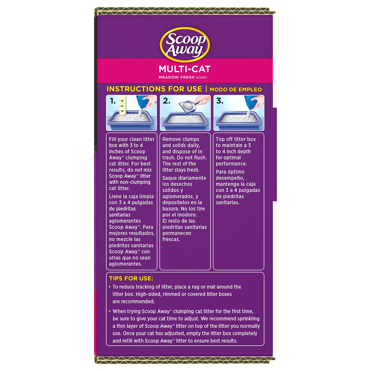 La arena para gatos Scoop Away brinda el máximo aglutinamiento y un mejor control del olor. La fórmula de Scoop Away Multigato tiene agentes adicionales de Odor Guard que luchan contra el crecimiento de bacterias que causan mal olor. Está hecha con pequeños gránulos para minimizar el rastro, y está libre de polvo al 99%.